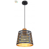Függeszték fém fekete alaplap, fekete kábel, fém fekete - arany búrák, natúr fa betéttel kombinálva. Magasság: 1200 mm, 1 x E27, 60 W, 230 V.