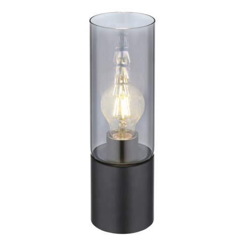 Matt fekete fém asztali lámpa füstszínű üvegbúrával és fekete textil kábellel. A billenőkapcsoló a kábelen található. 1 db E27-es foglalattal. Fényforrást nem tartalmaz.
