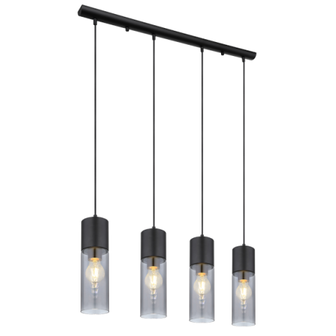 1 kép GLOBO ANNIKA FÜGGESZTÉK 4XE27 25W FEKETE FÉM/FÜST ÜVEG 80X9X156CM IP20