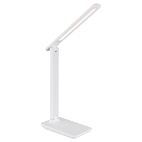 A Brighton Globo 58439W szabályozható asztali LED lámpa modern megjelenésével és bőr hatású, matt fehér felületével illeszkedik bármely belső térbe. A 7,5 W teljesítményű integrált LED modul 570 lumen fényáramot biztosít, így megfelelő megvilágítást nyújt