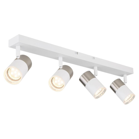 A Brisbon Globo 57851-4 karos spot lámpa négy GU10 foglalattal rendelkezik, így cserélhető fényforrásokkal használható, amelyek nem tartozékai a terméknek. A lámpatest matt fehér színű, anyaga fém, alumínium és műanyag kombinációja, amely modern megjelené