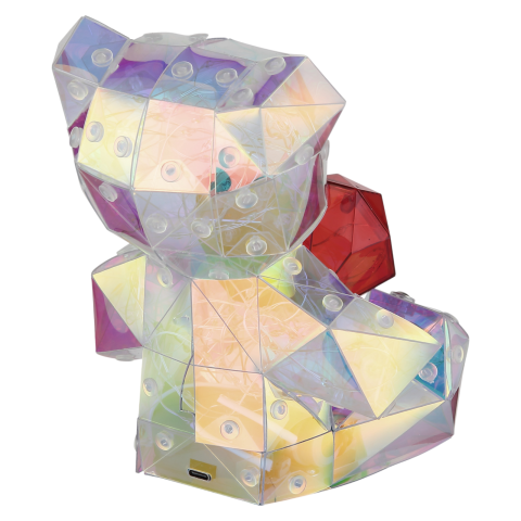 A GLOBO 28058K BRONDAR asztali lámpa elbűvölő kristályoptikával díszített medve dizájnjával nyűgöz le. A kristályhatású, átlátszó, és piros műanyagból készült test elegáns, csillogó megjelenést kölcsönöz, amely különleges hangulatot varázsol a gyerekszobában és bármely más helyiségben. A beépített érintéses dimmerrel folyamatosan állíthatja a fényerőt – egy egyszerű nyomógomb teszi lehetővé a kezelést. A lámpához adapter és USB töltőkábel