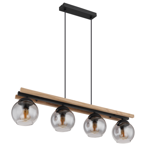 1 kép GLOBO CONNI FÜGGESZTÉK 4XE27 25W IP20 ÁLLÍTHATÓ MAGASSÁG 85X15X120CM FA-ÜVEG FÜSTSZÍN