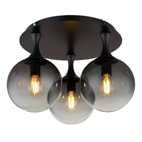 A Dalton Globo 15885-3D füstszínű mennyezeti lámpa három E27 foglalattal rendelkezik, amelyek cserélhető fényforrással szerelhetők fel. A lámpatest fő anyaga fém és üveg, megjelenése matt fekete és füstszínű, így modern és elegáns megjelenést kölcsönöz a