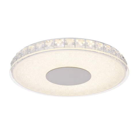 A Denni Globo 49336-16R kerek mennyezeti LED lámpa modern stílusával és kristály dekorációjával tűnik ki. A lámpatest 16 W teljesítményű LED modullal működik, amely 1080 lumen fényáramot biztosít hidegfehér, 4000 Kelvin színhőmérsékletű fény mellett. A te