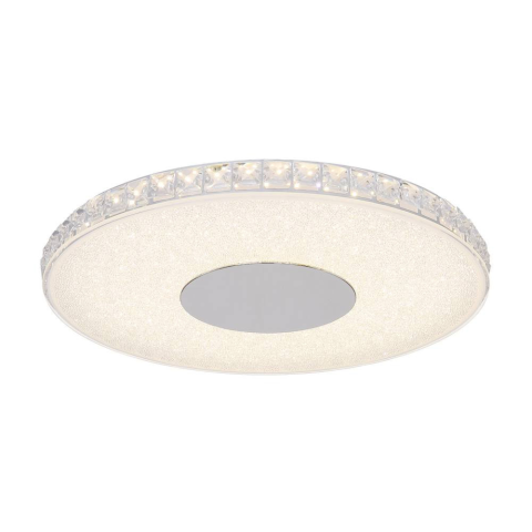 A Denni Globo 49336-24R kerek mennyezeti LED lámpa modern stílusú kialakítással és kristályhatású műanyag dekorációval rendelkezik. A lámpatest 24 W teljesítményű, integrált LED modullal működik, amely 1600 lumen fényáramot biztosít hidegfehér, 4000 K szí