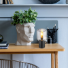 A Ninjo Globo 21004S asztali lámpa 24 cm magasságával és 13 cm átmérőjével modern, letisztult formavilágot képvisel. A lámpatest üveg és fém anyagokból készült, matt fekete és füstszínű felülettel, amely elegáns megjelenést biztosít. Az E27 foglalatba egy