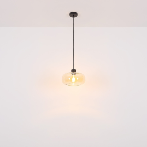 A Giuseppe Globo 15566HA függesztett lámpa borostyán színű üveg és matt fekete fém kombinációjával készül, amely modern és elegáns megjelenést biztosít. A lámpa egy darab E27 foglalattal rendelkezik, így a fényforrás szabadon választható, lehetővé téve a