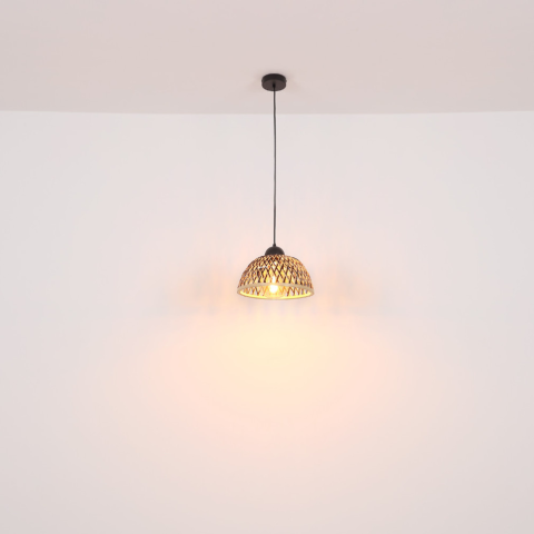 A Colly Globo 15767H1 függesztett lámpa fonott bambusz ernyővel és matt fekete fém szerkezettel készül, amely természetes és modern megjelenést kölcsönöz bármely beltéri térnek. Az ernyő 400 mm átmérőjű, a lámpa teljes magassága 1200 mm. Egy darab E27 fog