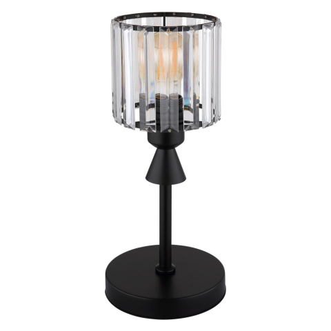 Asztali lámpa fém fekete matt, átlátszó akril kristályok, fekete PVC kábel, billenőkapcsoló a kábelen, átmérő: 150mm, M: 340mm, kábel hossza 1400mm, 1x E27 60W 230V izzó nélkül