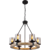 Ez a gyönyörű függőlámpa lenyűgöz nagyszerű, régimódi kialakításával. A kerek mennyezeti tartóból egy esztétikus lánc fut három fekete kábelhez, amelyek a kerek favázat (59 cm átmérő) tartják. A favázon 8 E27-es foglalat található, mindegyiket egy füstszínű, henger alakú búra fedi. Az izzók tetszés szerinti megválasztásának köszönhetően saját maga határozhatja meg a fény színét vagy erősségét legfeljebb 60 wattos teljesítményig. Vigyen új hangs