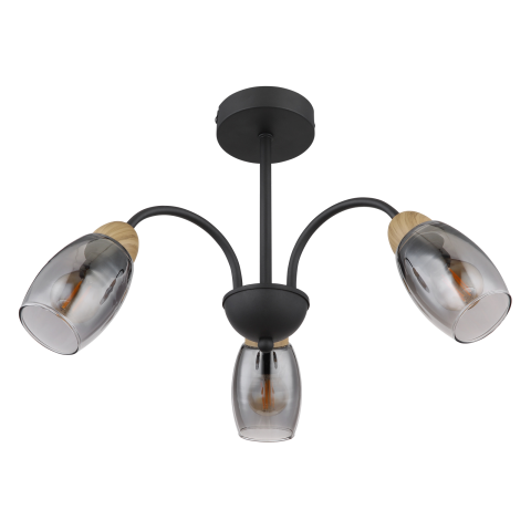 1 kép GLOBO GERLY MENNYEZETI LÁMPA 3XE14 25W IP20 47X29CM MATT FEKETE-FÜSTSZÍNŰ ÜVEG-FA