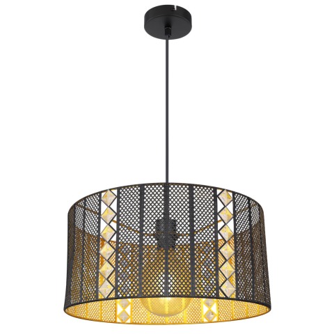 A Függesztett lámpa - Abini Globo 15450H egy modern lakásvilágítási megoldás, amelyet a Globo gyárt. A lámpatest főként fém és akril kristály felhasználásával készült, fekete és arany színkombinációban. Egy darab E27-es foglalattal rendelkezik, amelybe cs