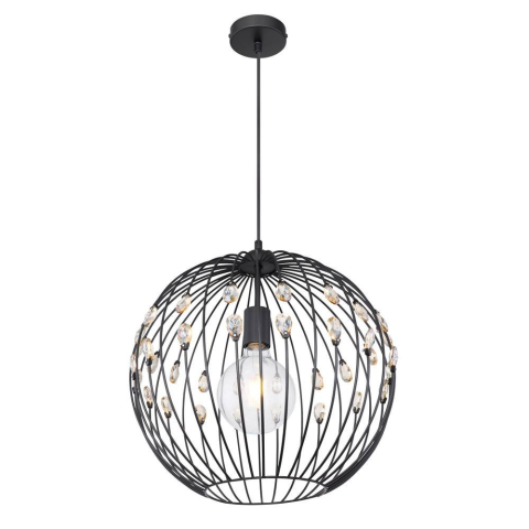A Hanako Globo 16029H1 függesztett lámpa modern designnal és 40 cm átmérőjű fekete fém testtel rendelkezik, amelyet K9 kristály díszítések tesznek különlegessé. A lámpatest egy E27 foglalattal szerelt, a fényforrás nem tartozék, így a fényáram, színhőmérs