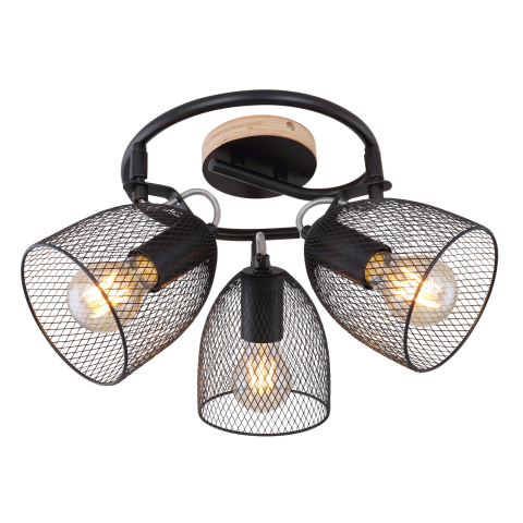 Ez a mennyezeti spotlámpa az ipari stílust természetes részletekkel ötvözi. Fekete színű fémrács búráját fa dekor egészíti ki, amely meleg, barátságos hangulatot teremt. Az E27 foglalat lehetővé teszi, hogy a fényforrást az igényekhez és a kívánt fényhatá..