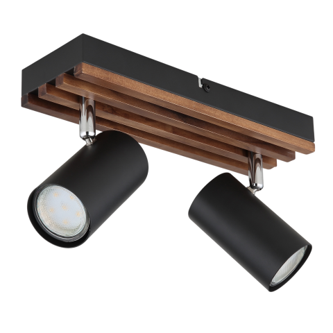 A GLOBO 57909-2 KAYDEN fali spotlámpa a modern dizájnt természetes megjelenéssel ötvözi, és minden helyiségben igazi szemet gyönyörködtető látványt nyújt. A téglalap alakú fali tábla elegáns, sötétbarna fa hatású felülettel lett ellátva, amely tökéletesen harmonizál a fekete, matt fém testtel. A fekete fémből készült hengeres spotlámpák célzott megvilágítást biztosítanak. A 260 mm hosszú, 80 mm széles és 125 mm magas kompakt méreteivel a KAYDEN lámpat