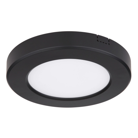 Mennyezeti lámpa, fekete műanyag váz, akril fehér fehér búra. Tolókapcsolóval a kívánt színhőmérséklet beállítható felszereléskor. :125, H:18, tartozék: 1xLED 6W 230V, 400lm, CCT 3.000-4000-6.500