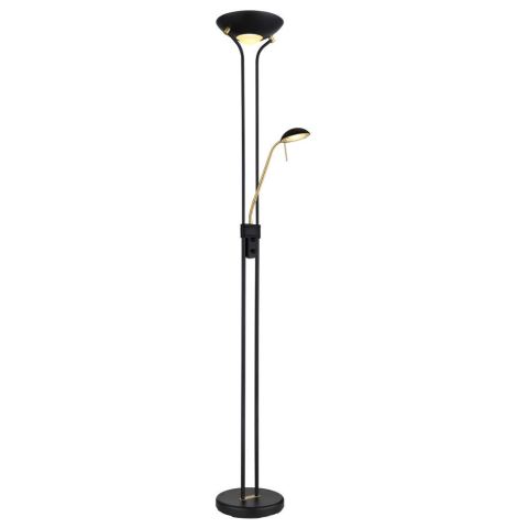 A Leonas Globo 59020B LED állólámpa olvasókarral 180 cm magasságú, modern kialakítású világítótest, mely melegfehér fényt (3000 K) biztosít. A lámpatest teljes fényárama 1690+350 lumen, a beépített LED modulok összteljesítménye 20+5,5 watt. Az állólámpa d