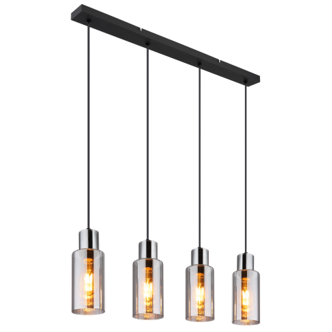 1 kép GLOBO Lidaria fekete-füstszürke függesztett lámpa (GLO-15708-4H) E27 4 izzós IP20
