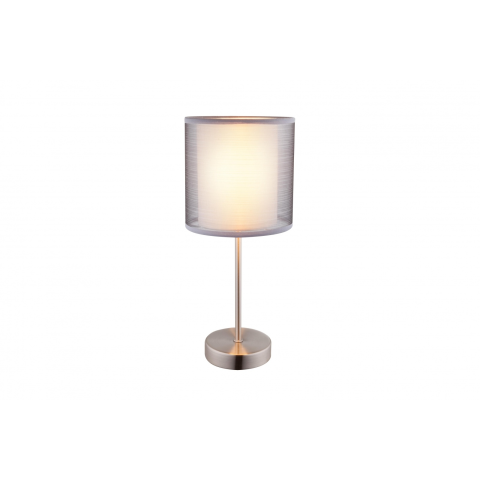 A Theo Globo 15190T textil asztali lámpa modern stílusban készült, dupla textil ernyővel és fém vázzal rendelkezik. A lámpa 35 cm magas, átmérője 15 cm, színe szürke és ezüst, anyaga fém és textil. Egy darab E14 foglalattal szerelt, amely cserélhető fényf