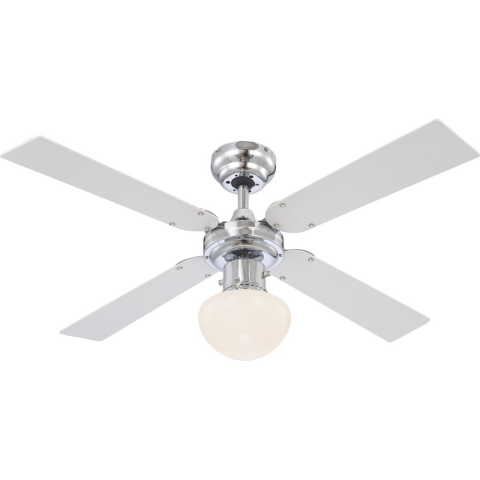 * Króm test, Ezüst MDF lapát * Forgásirány: 2 irányú (télen fűt, nyáron hűt), 3 fokozat * Motor: 50W 230V 50Hz * Ajánlott helyiségméret: 15m2 * Nem tartalmaz távirányítót, láncos húzókapcsolóval kapcsolható * Maximális ventilátor légtömegáram: 64,16
