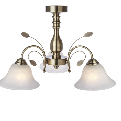A Posadas Globo 69007-3 mennyezeti lámpa klasszikus stílusban készült, bronz színű fém szerkezettel és opál üvegbúrával. A lámpatest három darab E27-es foglalattal rendelkezik, amelyek cserélhető fényforrással szerelhetők fel. A mennyezeti lámpa átmérője