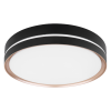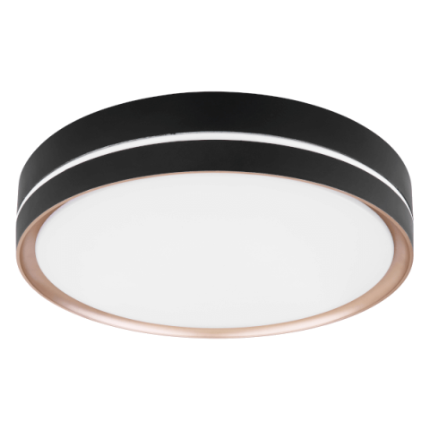 Mennyezeti lámpa fém fekete, bronz színű, opál műanyag búrával. Fényerőszabályzós, színhőmérsékletváltós, éjszaki fény funkció. Ø:385, H:80, inkl. 1xLED 24W 230V, 1100lm, CCT 2.700-6.500, távirányítóval