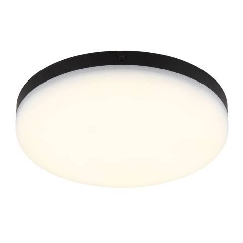Mennyezeti lámpa műanyag fekete matt, műanyag opál, : 220mm, H: 50mm, LED 12W 230V, 1200lm forrás, 700lm kimenet, 4000K