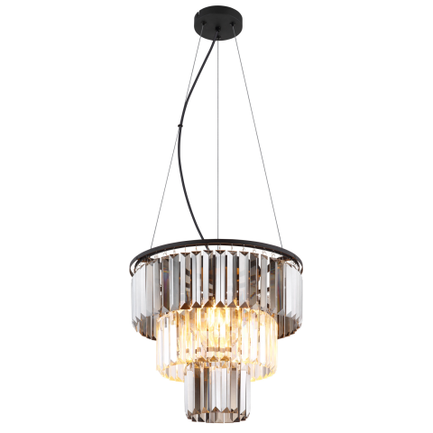 1 kép GLOBO Naxis fekete-füstszürke kristály függesztett lámpa (GLO-15695H) E27 3 izzós IP20