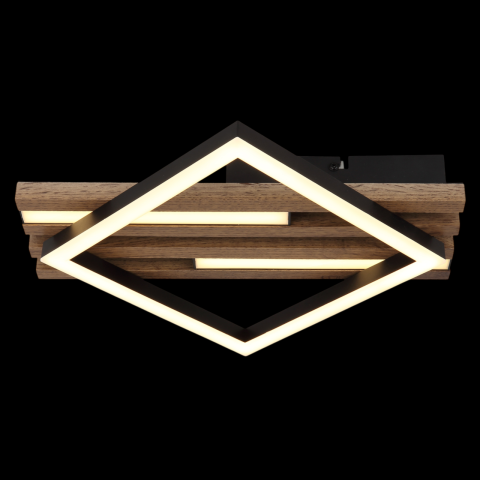 A GLOBO 67344D OBRIEN mennyezeti lámpa modern kialakítással rendelkezik. A matt fekete fém burkolata tökéletesen kombinálódik az akusztikus MDF fa panel felülettel, meleg és stílusos hangulatot kölcsönözve szobájának. A fekete műanyag keret és az fehér műanyag búra egyenletes fényeloszlást és kellemes világítást biztosít. Az 1990 lm (forrás) és 1020 lm (kibocsátás) összteljesítményű beépített LED technológiának köszönhetően a lámpa kellemes, meleg feh
