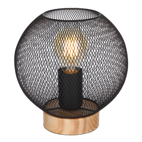 Ez az asztali lámpa fekete fém lámpatesttel, barna fa dekorációval és fekete drótháló búrával készült. A lámpa beépített kapcsolóval rendelkezik, mellyel könnyedén ki- és bekapcsolható, így praktikus választás íróasztalra vagy éjjeliszekrényre...