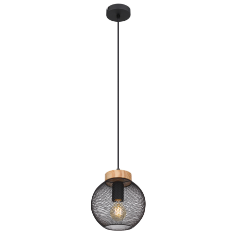 Ez a függesztett lámpa a Pablo család jellegzetes darabja. A fekete fém és a fa dekoráció harmonikus párost alkot, melyet a drótháló búra tesz teljessé...