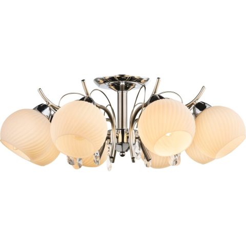 A Perdita Globo 54711-8 kristály díszes csillár klasszikus stílusban készült, 8 karos kialakításával elegáns megjelenést biztosít bármely beltéri térben. A lámpatest fém és üveg anyagokból készült, ezüst és opál színkombinációval. A csillár E14 foglalatta