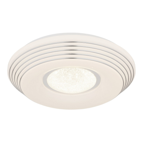 A Pillo Globo 41293-24 szabályozható mennyezeti LED lámpa modern technológiát és elegáns kristályhatású dizájnt ötvöz. A 24 W teljesítményű LED modul 1400 lumen fényáramot biztosít, melynek színhőmérséklete 2700 és 6500 Kelvin között, hidegfehér és melegf