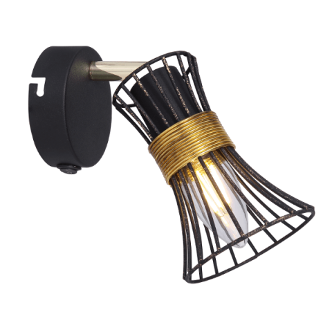 A Purra Globo 54814-1 spot lámpa modern stílusú, fali elhelyezésre tervezett világítótest, amely fekete-arany színű fémházzal rendelkezik. A lámpatest egy darab E14 foglalattal szerelt, cserélhető fényforrás használatára alkalmas, így a teljesítmény, a fé