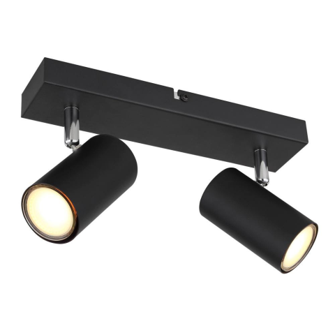 A Robby Globo 57911-2B spot lámpa modern, letisztult megjelenésű mennyezeti világítótest, amely matt fekete és króm színkombinációban készül. Két darab GU10 foglalattal rendelkezik, így a fényforrások cserélhetők, lehetőséget adva a kívánt fényáram és szí