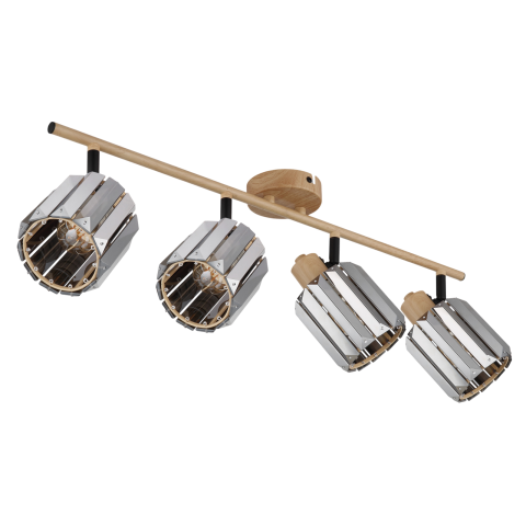 1 kép GLOBO Run spotlámpa E14 4x max. 40W 64x9x15cm elfordítható fém fa füstszínű