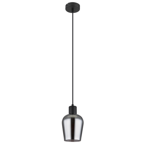 Függeszték fém fekete matt, füstszínű üveg, fekete PVC kábel, átmérő: 135mm, M: 1500mm, 1x E27 40W 230V izzó nélkül