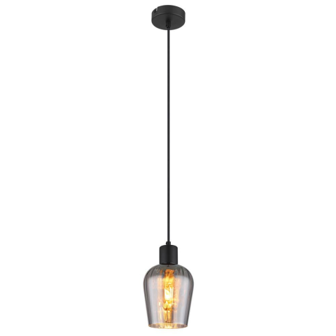 A Ryan Globo 15627 füstszínű függesztett lámpa modern kialakítással és letisztult formavilággal rendelkezik. A lámpatest fő anyagai a fém és az üveg, melyek matt fekete és füstszínű felülettel társulnak. Egy darab E27 foglalattal szerelt, amely cserélhető