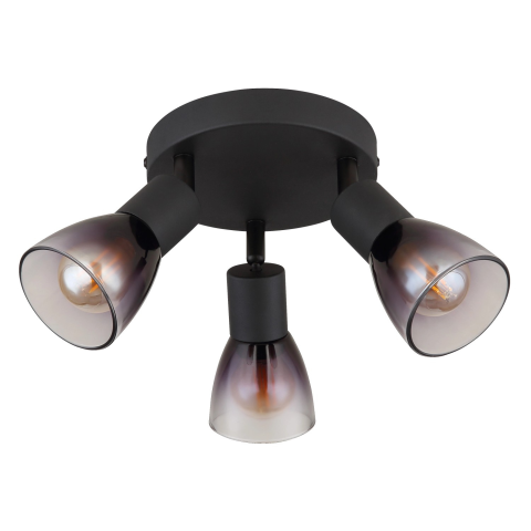 Spotlámpa fém fekete matt, füst színű üveg, átlátszó színátmenet, : 220mm, H: 165mm, 3x E14 25W 230V.
