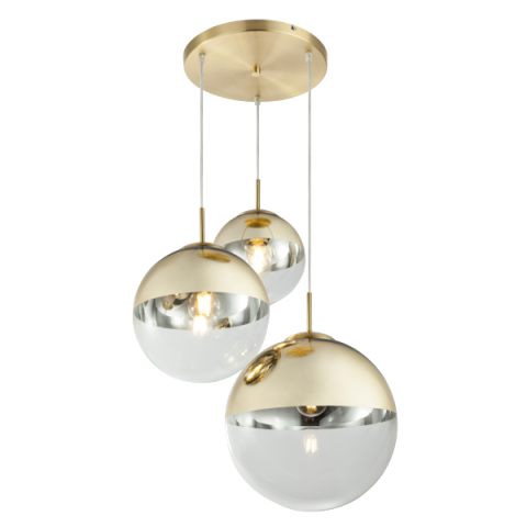 1 kép GLOBO VARUS FÜGGESZTÉK 3XE27 40W FÉM MATT ARANY/ÜVEG ARANYGÖMB