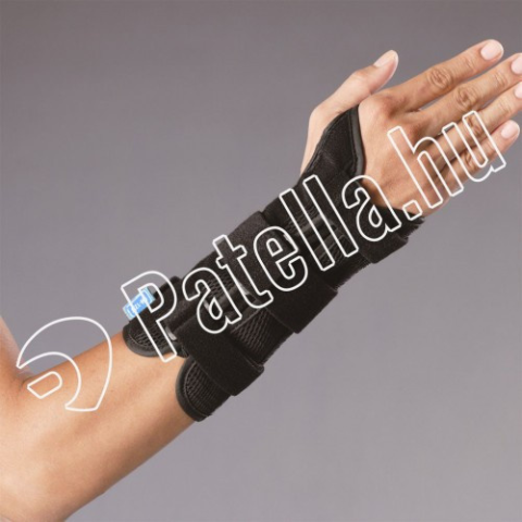 A GM-W12 adaptálható csukló ortézis, egy kivehető palmáris alumínium sínt és 2 oldalmerevítést tartalmaz, mely három tépőzárral rögzíthető. A kivehető, hajlítható palmáris sín anatómiai helyzetben tartja a csuklót. Indikáció: Distorsio, subluxatio, luxati
