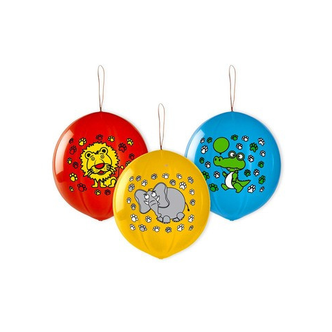 A csomagban 3 állatmintás, színes lufit találsz, kb. méretük 45 cm. A guminak köszönhetően nem kell a labda után futkosni, ütögetheted és visszapattan.