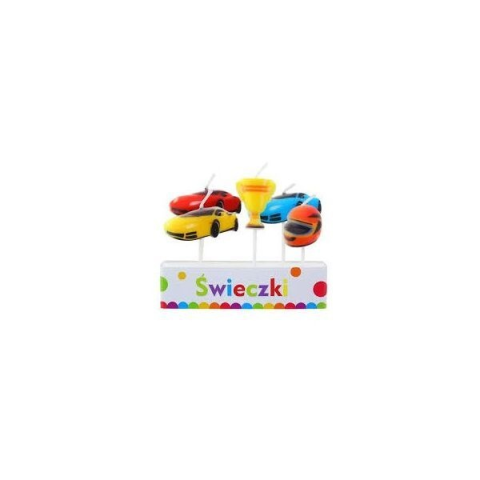 Torta gyertya, autóversenyző mintákkal. A csomag 5 db gyertyát tartalmaz.
