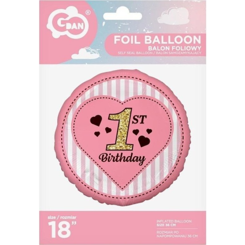 Godan Első Születésnap Pink Fólia Lufi - 36 cm (481240)