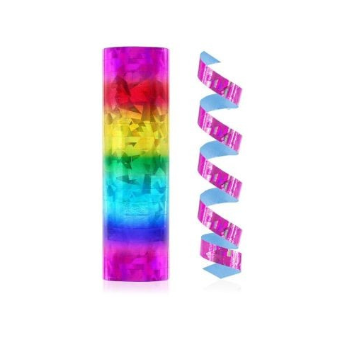 Holografikus szerpentin. A tekercs 18 darab 4 méter hosszú szalagot tartalmaz. Anyaga: papír