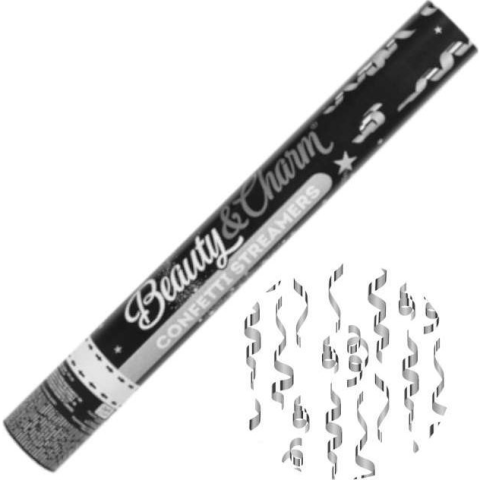 Godan Konfetti ágyú ezüst színű szalagokkal 40 cm (493642) party kellék 1 kép