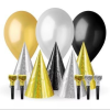 - 12 darabos partikiegészítő szett - Elegáns arany-fekete dizájn - Könnyen használható és dekoratív elemek - Ideális születésnapi és ünnepi eseményekhez