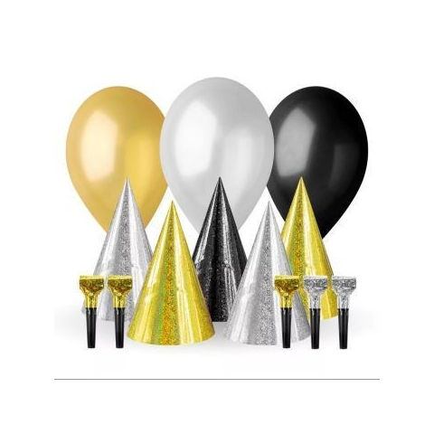 - 12 darabos partikiegészítő szett - Elegáns arany-fekete dizájn - Könnyen használható és dekoratív elemek - Ideális születésnapi és ünnepi eseményekhez