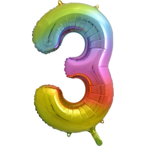 Godan Szám Fólia Lufi - 3-as, 85 cm, Szivárvány (GODA2042) party kellék 1 kép